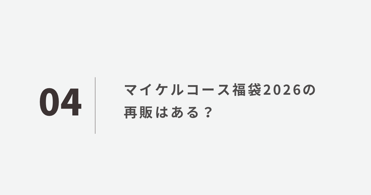 マイケルコース福袋は数量限定販売のため、再販は基本的に行われません。