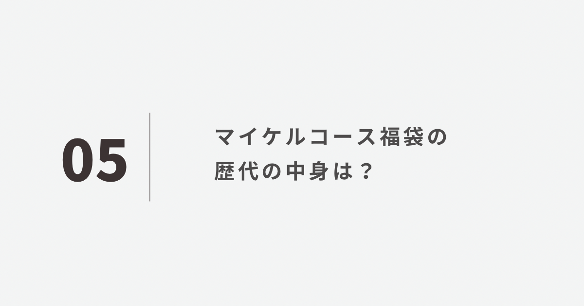 過去のマイケルコース福袋には、以下の3つが主に入っていたようです。