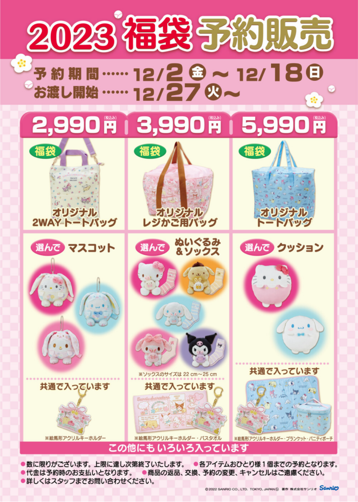 地方へ旅行に行く予定の方、また帰省する方は、もしかすると店舗でサンリオ福袋を手に入れることができるかもしれません。