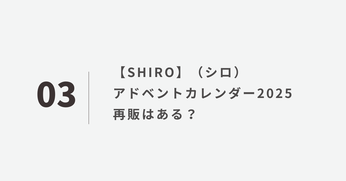 【SHIRO】(シロ)アドベントカレンダー2025再販はある?