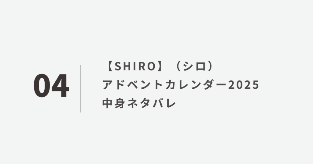 【SHIRO】(シロ)アドベントカレンダー2025中身ネタバレ