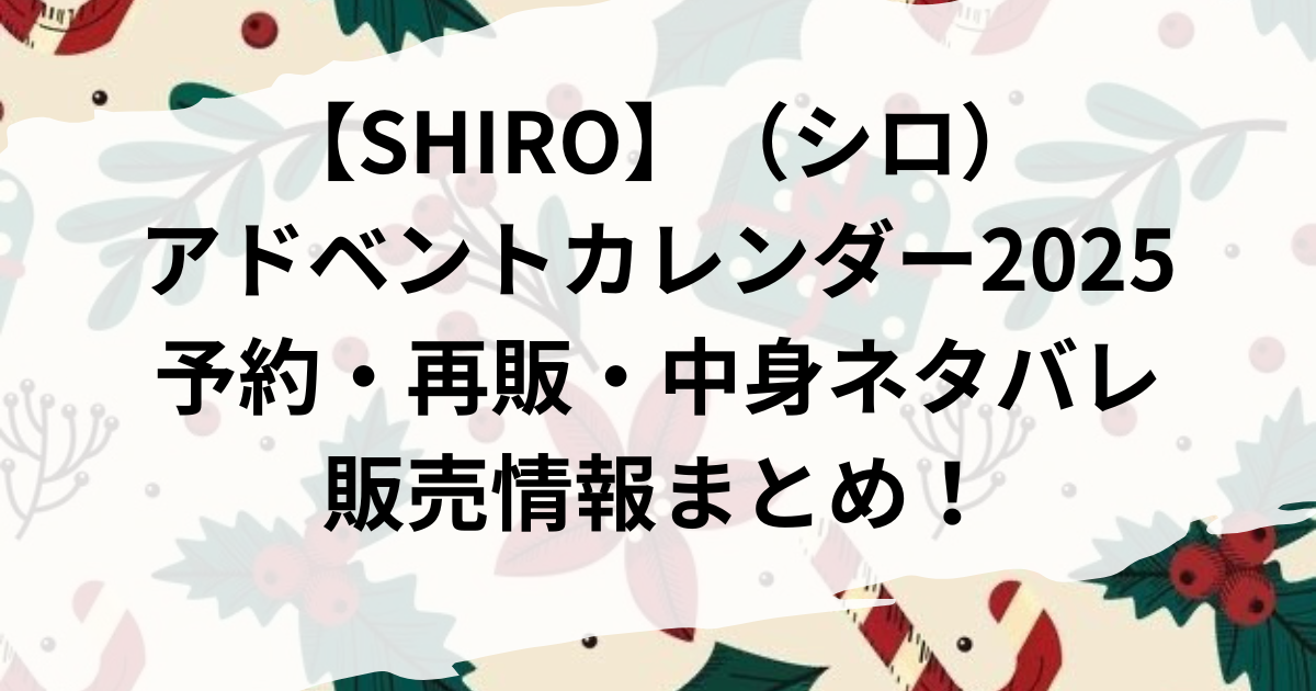 今年こそはクリスマスコフレをゲットしたい!という方へ、この記事で【SHIRO】(シロ)アドベントカレンダー2025予約・再販・中身ネタバレ販売情報まとめ!をご紹介します!